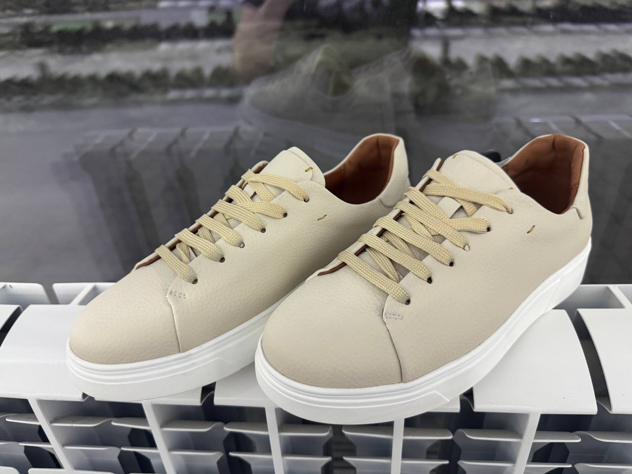 Мужские кожаные кеды с белой и черной подошвой.
