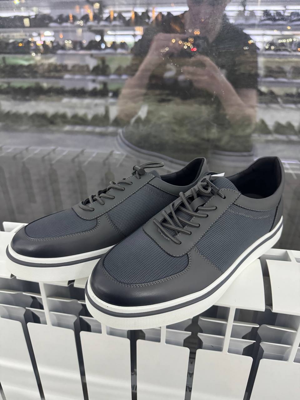 Мужские кожаные кеды в сетку.